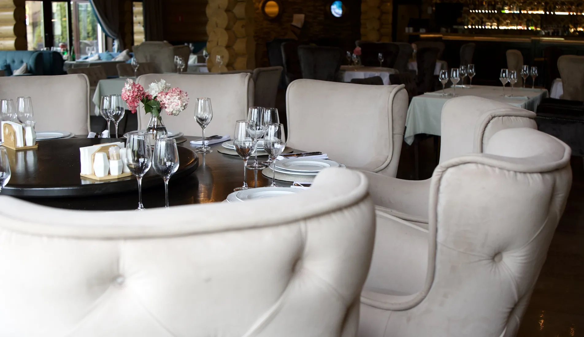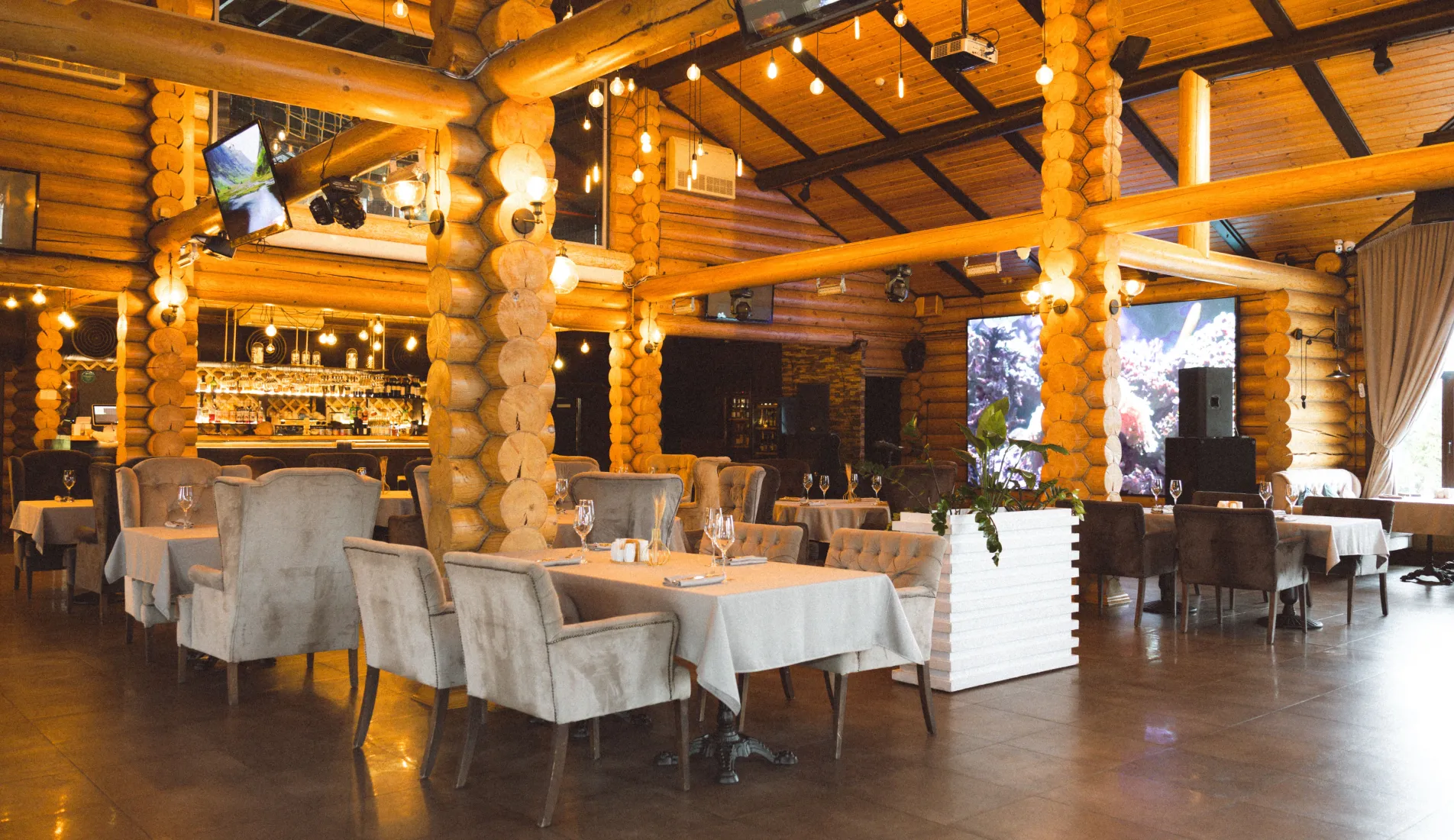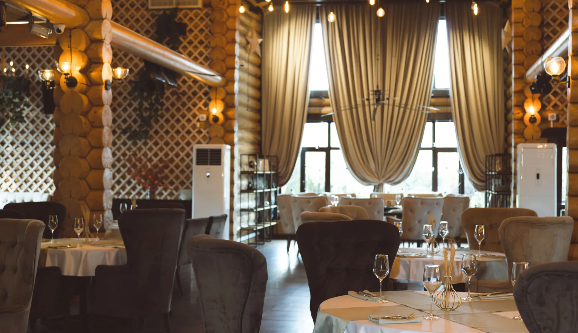 Главный зал загородного клуба "Крёкшино Парк" является смесью стилей шале, рустик, прованс и бохо. Продуманный до мелочей, он непременно заразит "своей" атмосферой гостей Вашего торжества и создаст идеальное настроение.